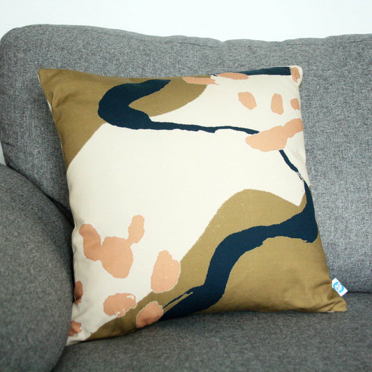 Green and Orange Abstract Coastal Cushion – 45cm Square Handmade Cushion