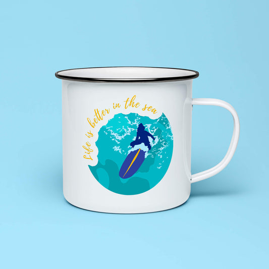 'Life is Better in the Sea' Surf Enamel Camping MugRegular price £16.00 GBPRegular priceUnit price / per-