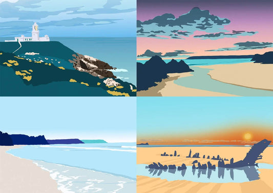 Welsh Beach Illustration Print Bundle – Coastal Artwork Collection for Beach Lovers